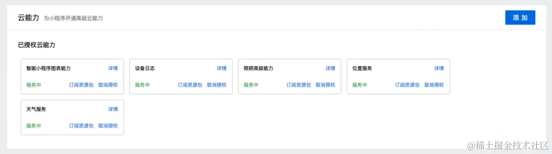 在开发面板的过程中,可能需要一些高级能力,比如信息统计、智能算法等,我们会以云能力的形式提供给开发者。