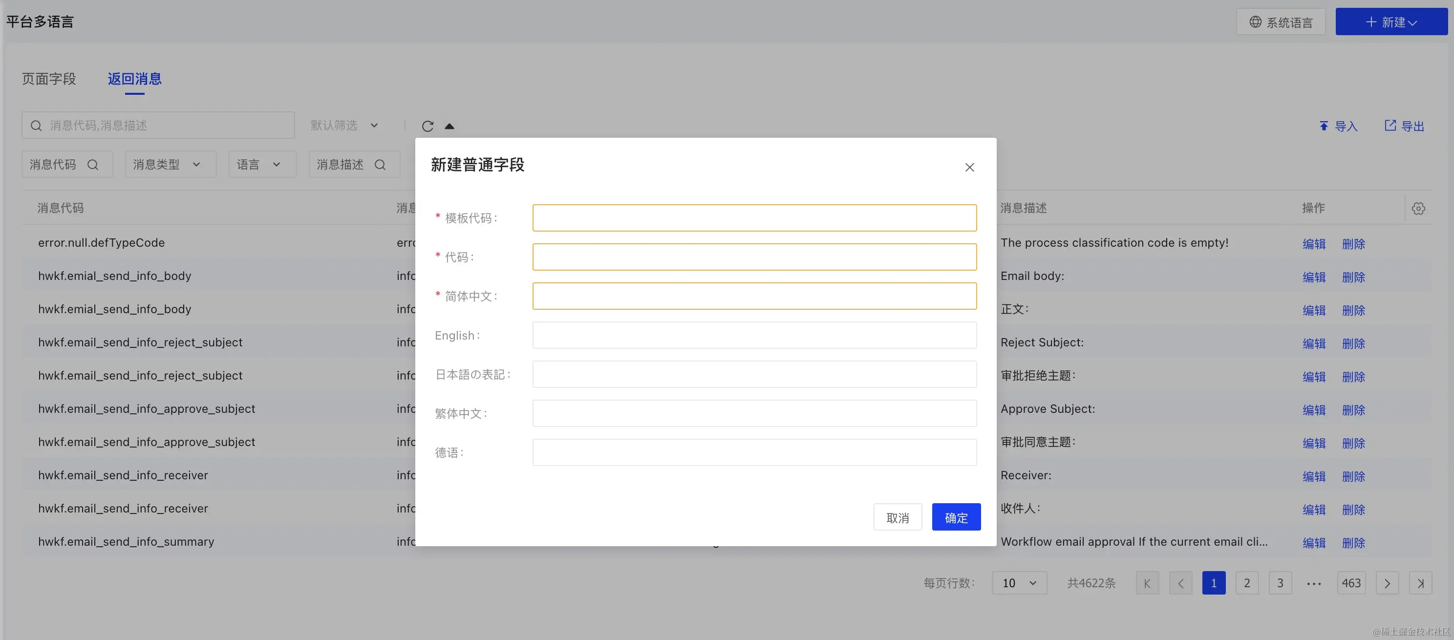 消息多语言: 主要是后端返回消息数据多语言。