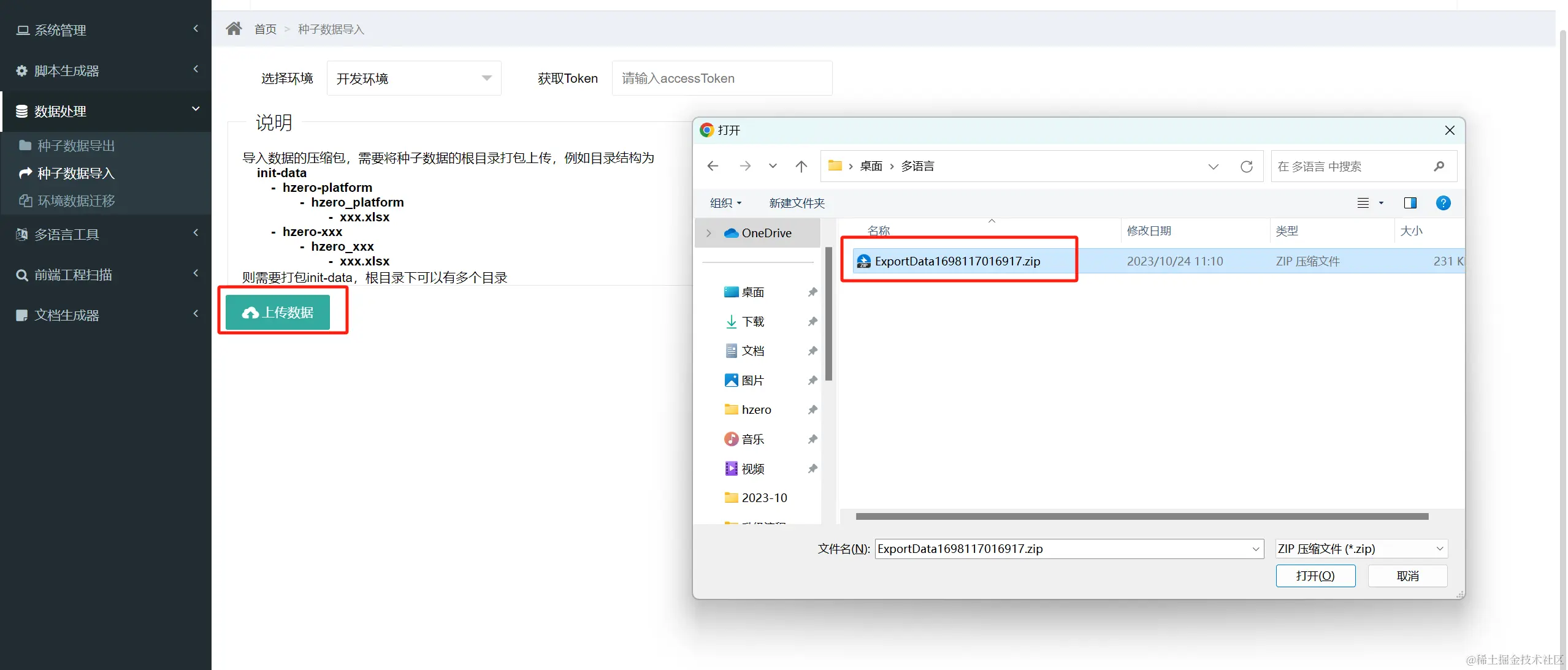 - 进入到种子数据导入界面进行数据导入,即可完成翻译。