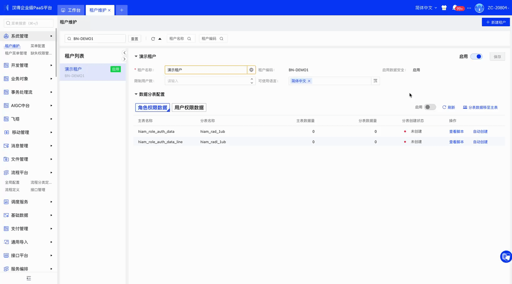 平台可以进行租户语言的分配权限,即分配才可用,可以做到不同地域租户实现不同控制。