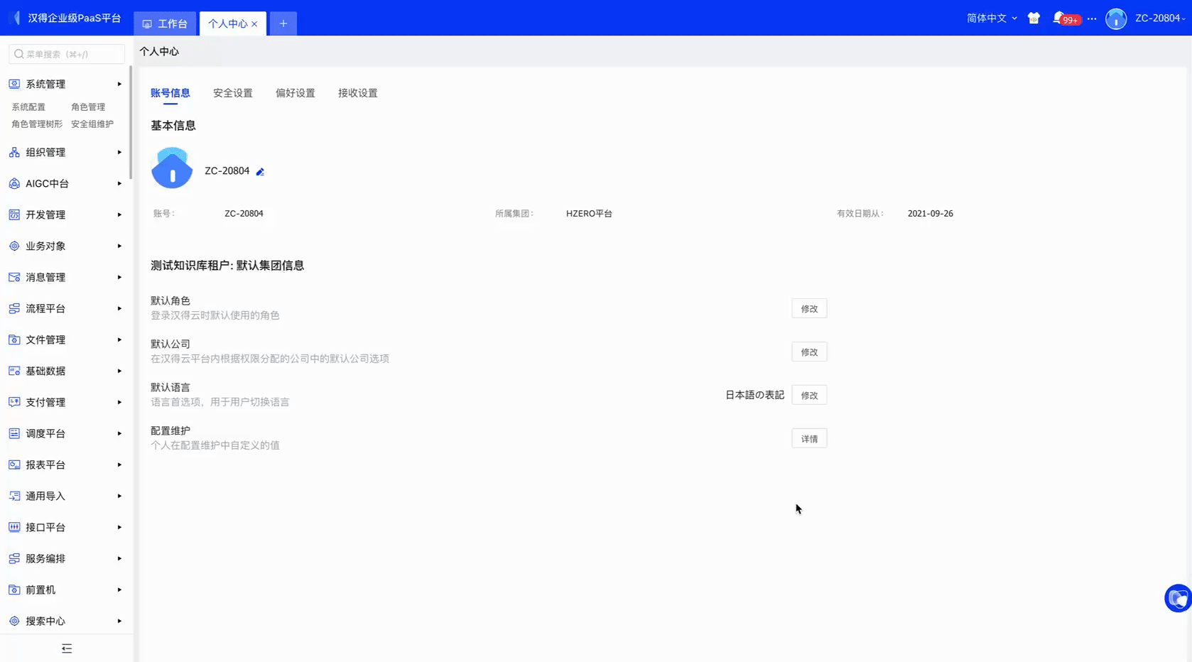 至此平台新增语言就可以使用了,可以进入到系统切换语言查看效果。