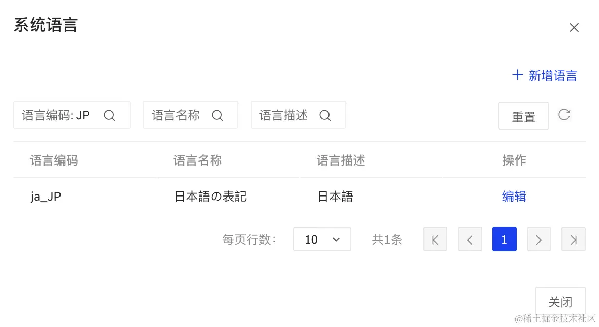 需进入平台多语言页面,点击系统语言进行语言添加,如下图所示: