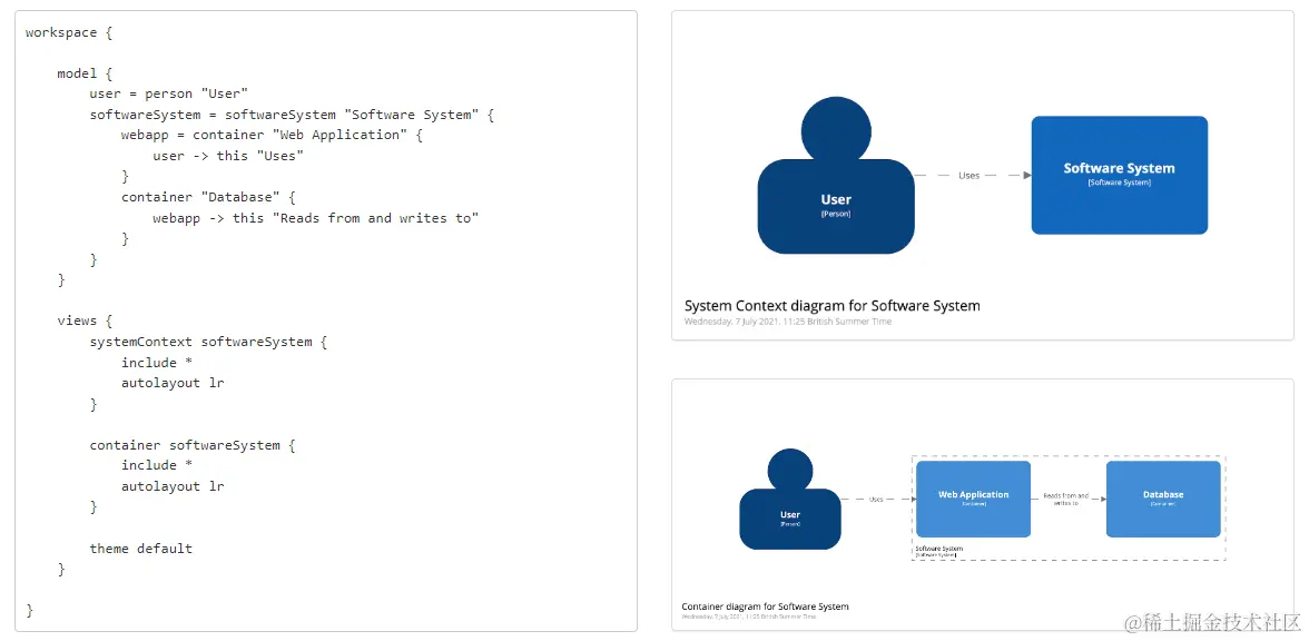 - 使用Structurizr DSL编写图表代码,这使得创建和编辑图表变得非常方便。您可以使用专门的DSL语言,将您的设计思想转化为图表,简化了整个过程。