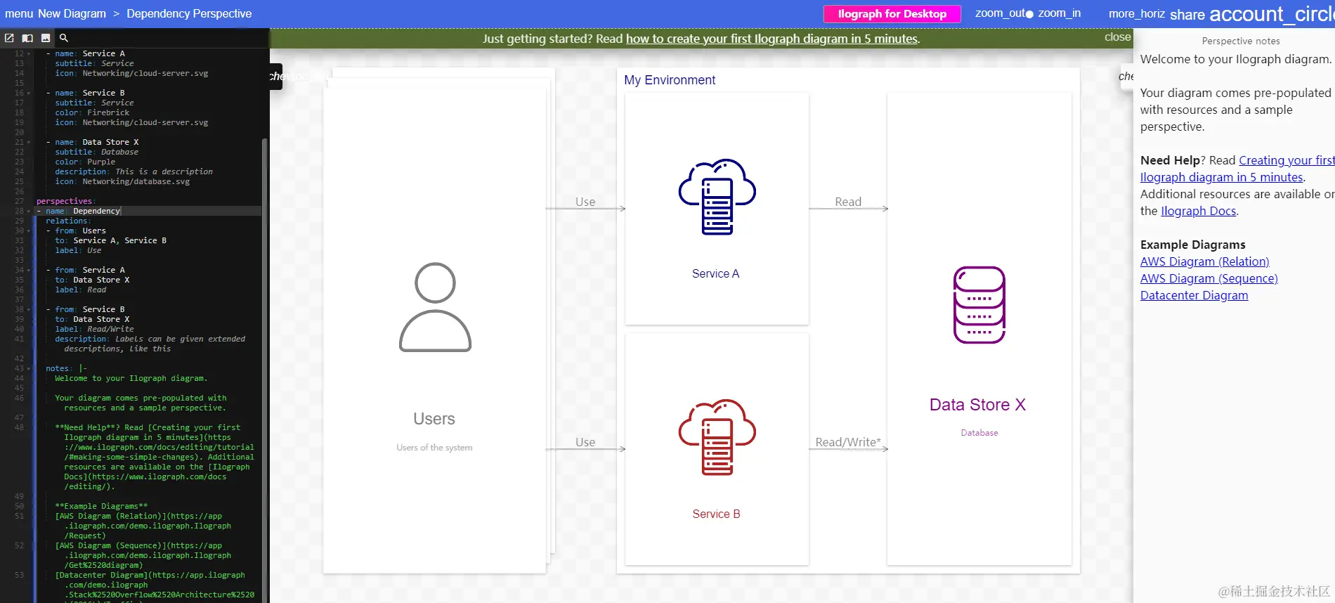 Ilograph 是一个非常有用的工具,它允许您使用YAML语言创建交互式图表,而且这些图表还可以自动排列,让它们看起来整齐而有条理。更酷的是,您可以随时根据需要切换不同的视角,以查看图表的不同方面。