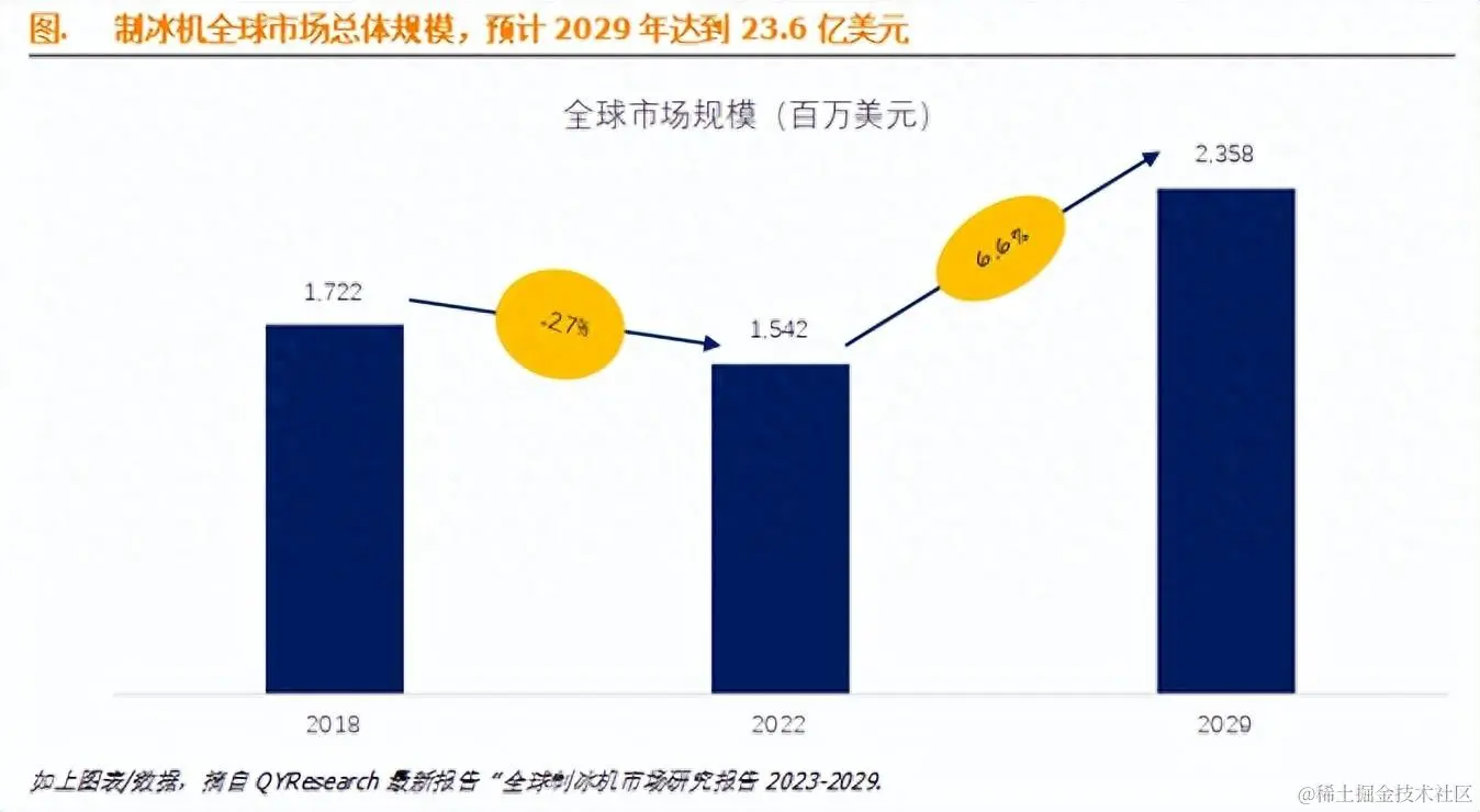 据QYResearch调研团队最新报告“全球制冰机市场报告2023-2029”显示,预计2029年全球制冰机市场规模将达到23.6亿美元,未来几年年复合增长率CAGR为6.6%。