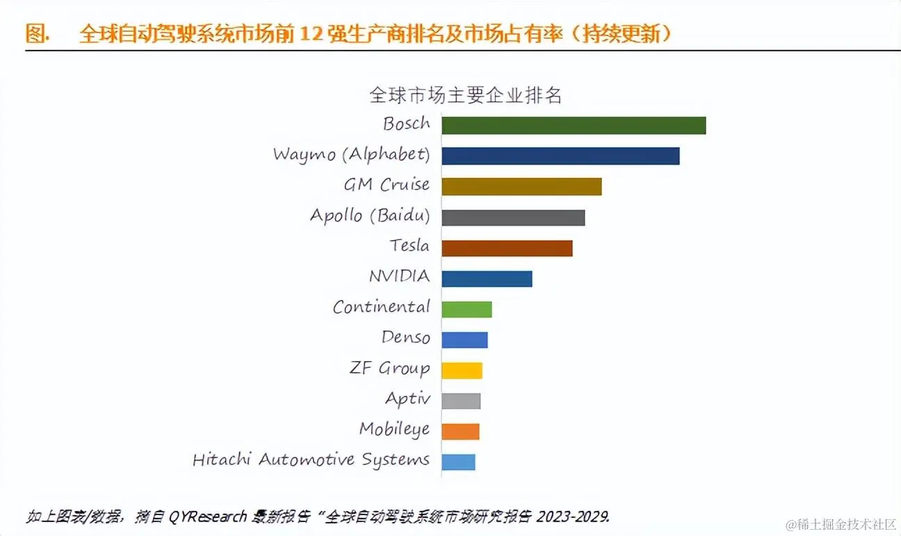 2023年全球自动驾驶系统行业总体规模、主要企业国内外市场占有率及排名