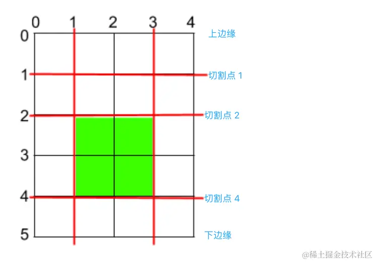 解释:上图所示的矩阵蛋糕中,红色线表示水平和竖直方向上的切口。切割蛋糕后,绿色的那份蛋糕面积最大。
