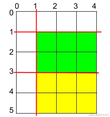 解释:上图所示的矩阵蛋糕中,红色线表示水平和竖直方向上的切口。切割蛋糕后,绿色和黄色的两份蛋糕面积最大。