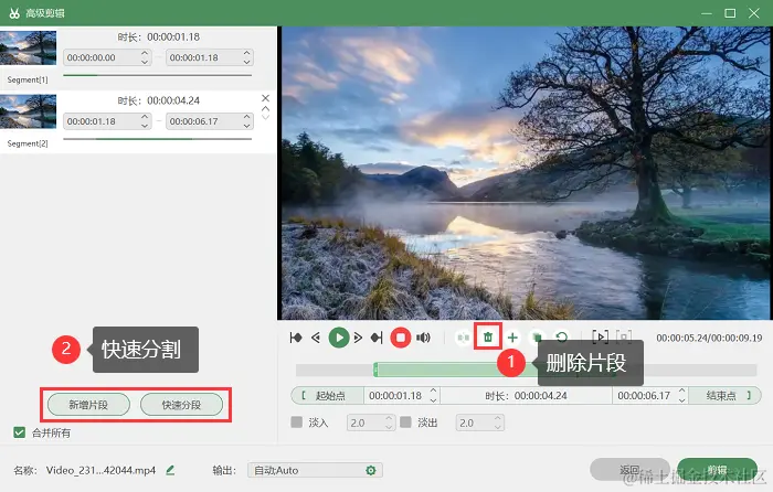 第3步:录制微信视频结束后,软件提供了 “高级剪辑” 功能,您可以把一些多余的片段删除掉,然后保存视频。