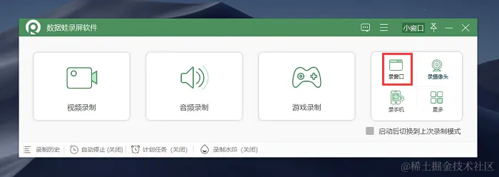 第1步:下载并安装数据蛙录屏软件,根据您的操作系统从官方网站下载对应的版本,打开进入软件,在首页选择 “录窗口” 模式。