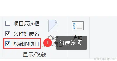 步骤2:确保【隐藏的项目】或【隐藏的文件】选项未被勾选;