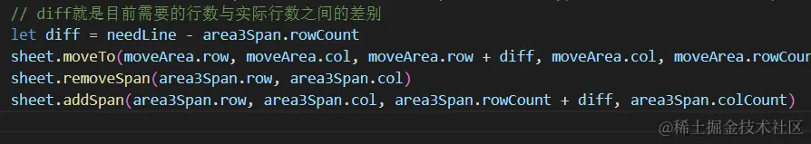 最后,使用计算出来的diff,扩大单元格合并的范围,并向下移动对应行数即可: