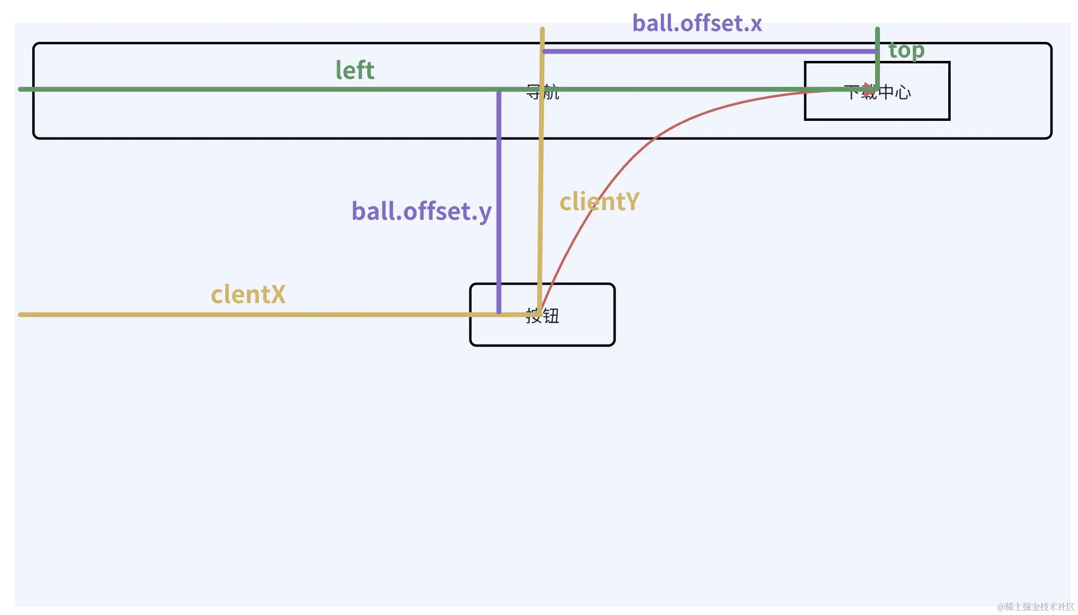 获取位置差y轴:下载中心.top - 按钮.clientY