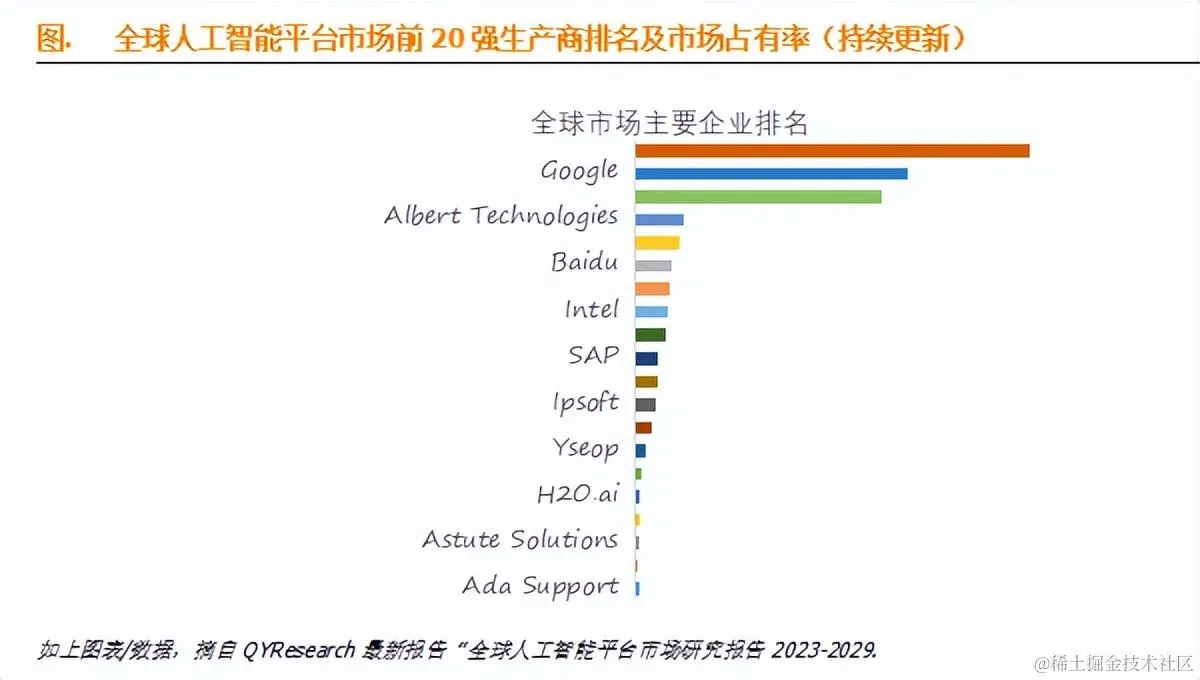 2023年全球人工智能平台行业总体规模、主要企业国内外市场占有率及排名
