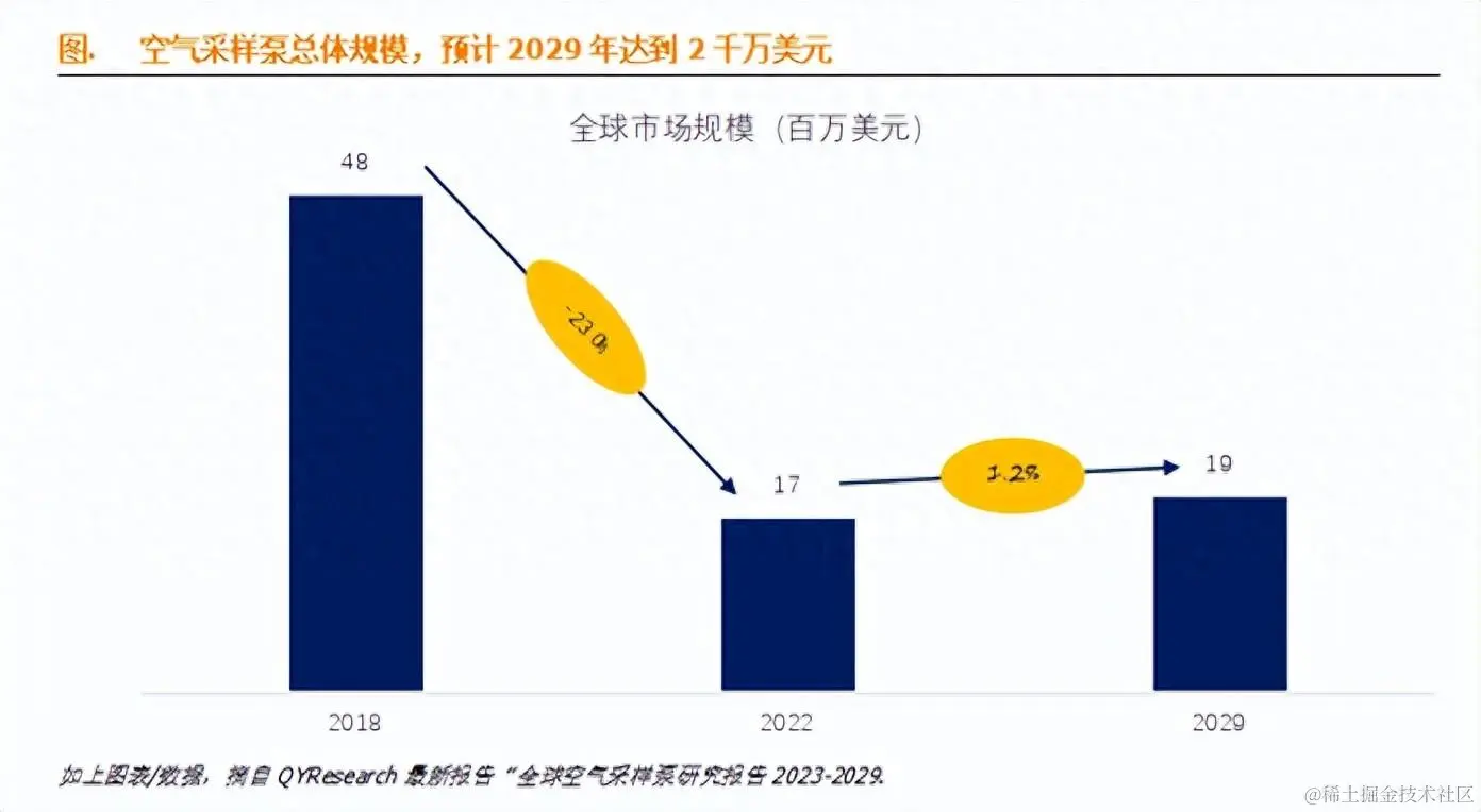 据QYResearch调研团队最新报告“全球空气采样泵市场报告2023-2029”显示,预计2029年全球空气采样泵市场规模将达到2千万美元,未来几年年复合增长率CAGR为1.2%。