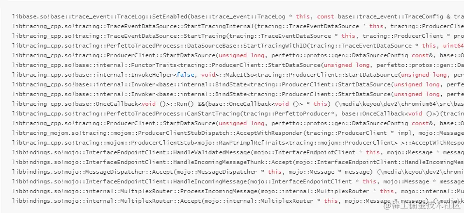 注册 hook 后,所有新的 Trace 都会被发送给 hook 函数,也就是 tracing::TraceEventDataSource 类,这个类由 //services/tracing 服务提供,用来将 TraceLog 对接到 Perfetto 。 Perfetto 是一个跨平台的 tracing 组件,包括一个可嵌入到其他程序中的 tracing 库以及用来可视化展示 trace 的工具 (ui.perfetto.dev/#!/和chrome://tracing)。 关于 Perfetto 的详细信息见 perfetto.dev/#/.