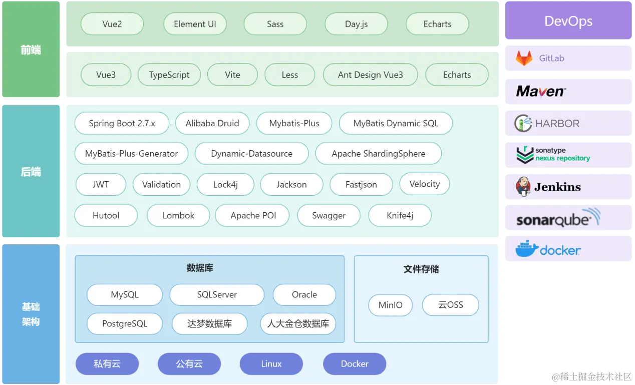 ● 前后端分离技术,后端采用java/.net主流开发技术栈,前端同时适配Vue2/Vue3技术栈