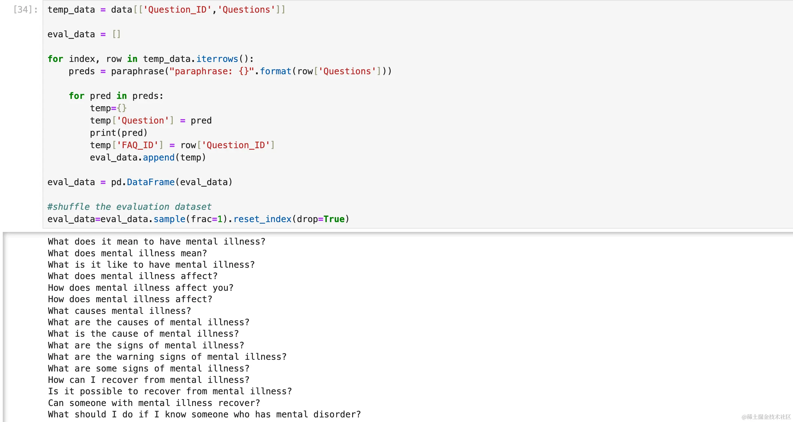 为了评估系统,我们必须模仿用户如何使用搜索。 简而言之,我们需要从源问题生成与问题复杂性相似的释义问题。 我们将使用 t5-small-finetuned-quora-for-paraphrasing 微调模型来解释问题。