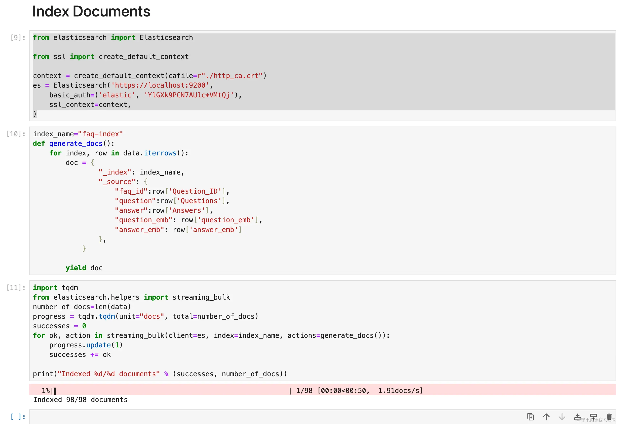 我们将使用 Elasticsearch helper 函数。 具体来说,我们将使用 streaming_bulk API 来索引我们的文档。