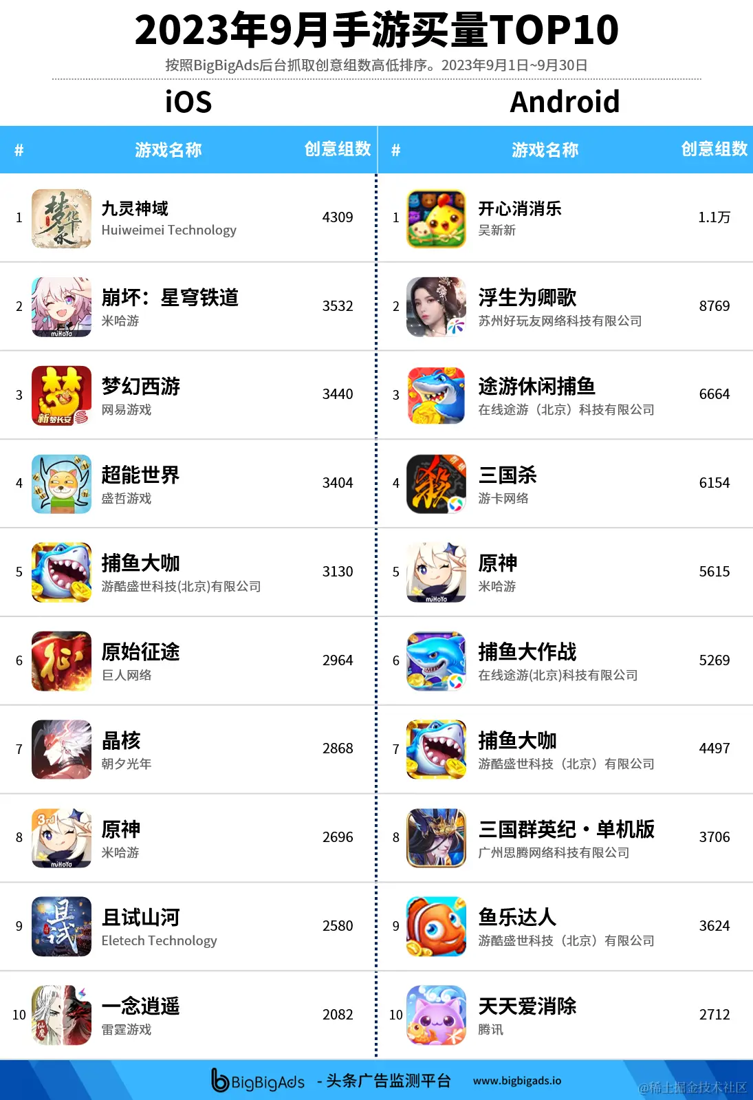 米哈游热门回合制二次元卡牌手游【崩坏:星穹铁道】iOS端在9月份投放了3532组创意,比8月提升了5.6%。9月份的投放增长主要为了配合游戏1.3版本的上线,版本期间游戏会上线2位5星角色“丹恒·饮月”和“符玄”。尤其是“丹恒·饮月”,该角色不仅人设讨喜,并且强度也极高,在玩家群体中有着极高的人气,相关的买量素材也有极好的表现。