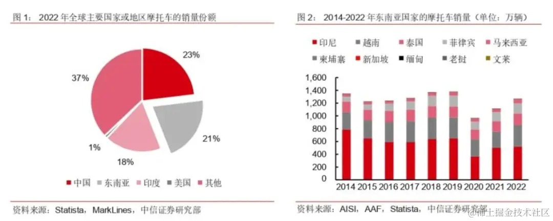 而针对全球市场,中国两轮电动车所具有的想象空间还要更大。以中国“近邻”东南亚为例,后者是全球第二大摩托车市场,份额约在21%左右。中信证券援引市场机构ASEANstats的数据指出,东南亚目前约有2.5亿辆摩托车,摩托车+两轮电动车年需求空间高达4000万辆。