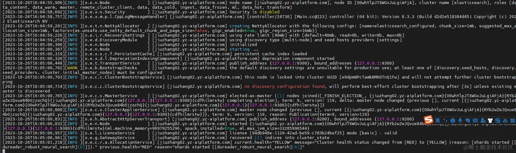 #尝试清理数据路径/algorithm/temp_es/elasticsearch-8.3.3/data,删除其中的节点锁和其他临时文件