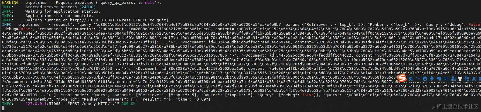 sh examples/semantic-search/run_neural_search_server.sh - 启动后可以使用curl命令验证是否成功运行: curl -X POST -k http://localhost:8891/query -H 'Content-Type: application/json' -d '{"query": "衡量酒水的价格的因素有哪些?","params": {"Retriever": {"top_k": 5}, "Ranker":{"top_k": 5}}}'
