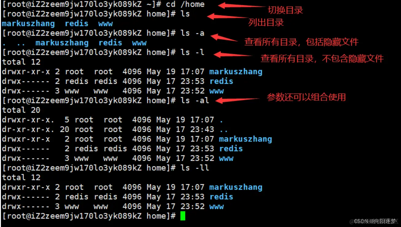 如果你仔细观察的话,不难发现,其实在 [root@localhost ~] 中,就已经指明了当前所在的目录,通常刚登陆时会位于自己的主目录中,而 ~ 就表示主目录,因此也就有了通过使用 cd ~ 可以回到自己的主目录。【例 1】学习 cd - 的用法。