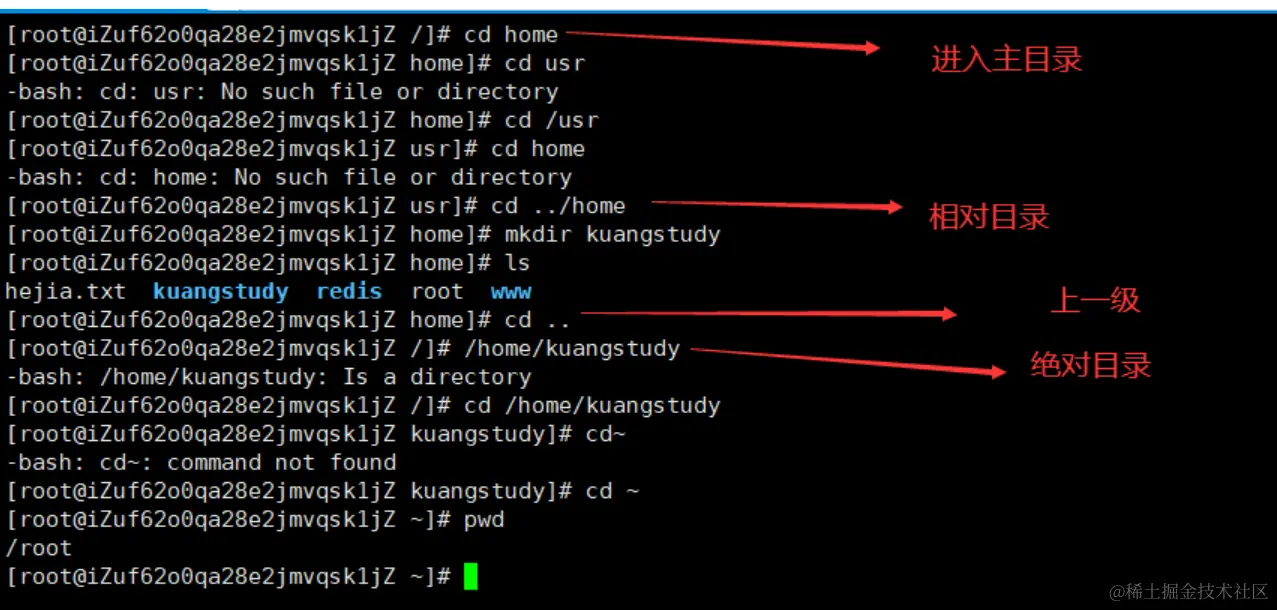 注意,这里所使用的 pwd 和 cd 命令,目前只需知道它们的功能即可,具体用法会在后续文章中作详细讲解。