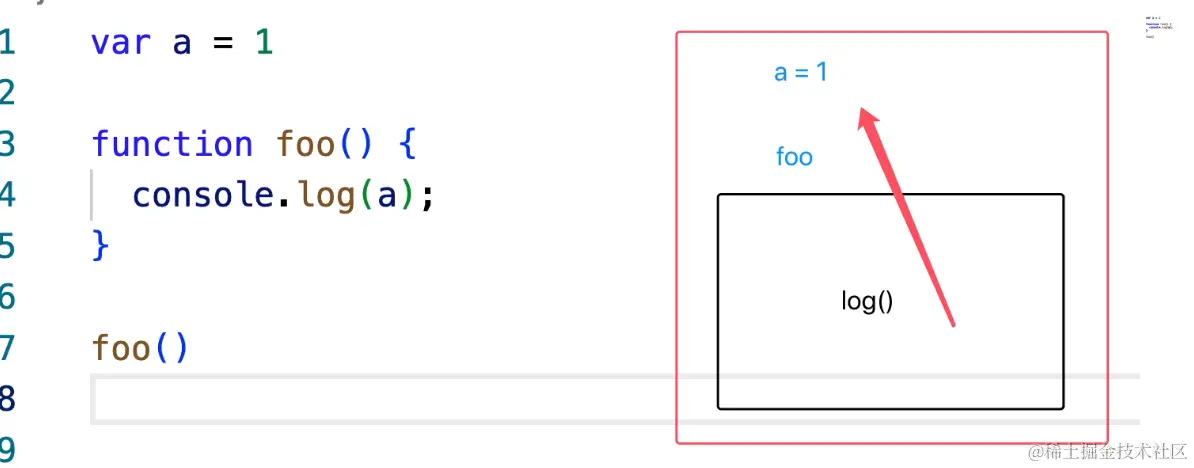 如下编译器在函数体作用域查找不到变量会去外层函数体作用域查找变量: