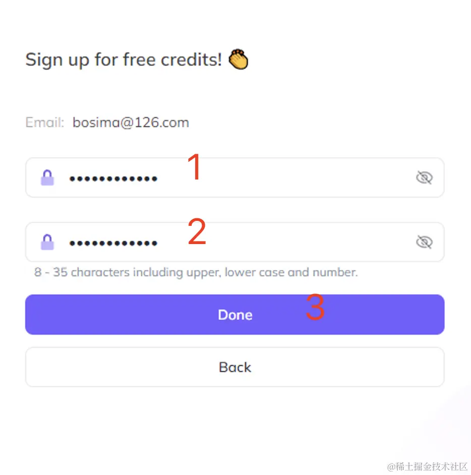 输入你想要的登录密码(输两遍),点击“Done”完成注册。