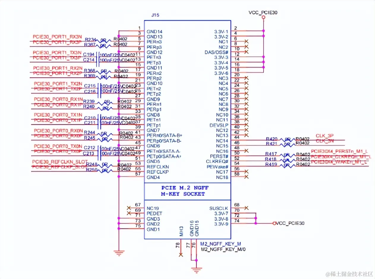 vcc3v3_pcie2x1l0、vcc3v3_pcie30:供电引脚节点