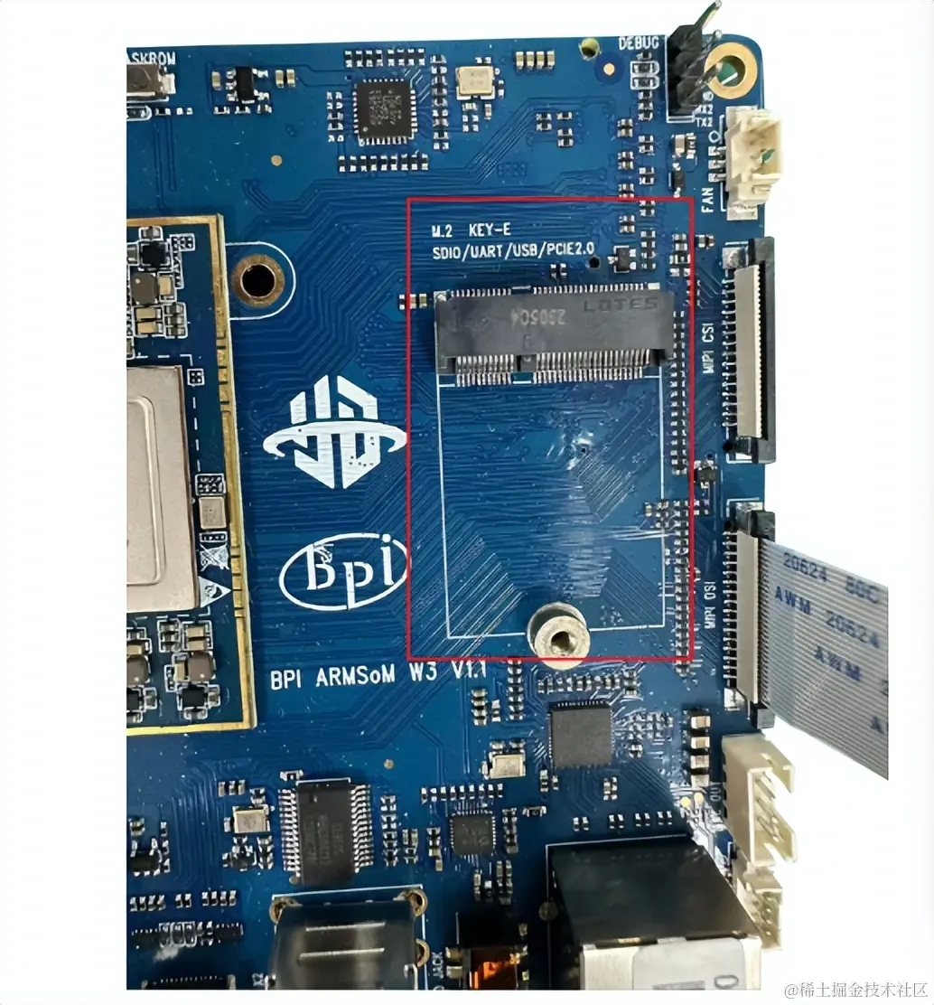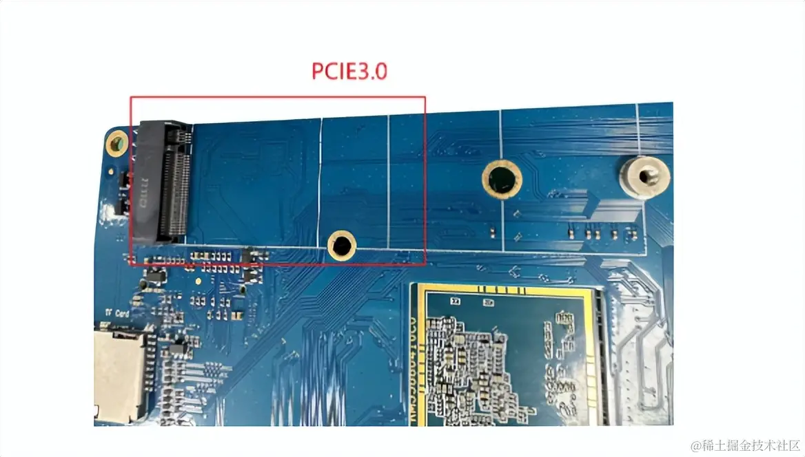 Armsom-W3开发板上有 1 个 PCIe3.0 x 4 接口和一个PCIe2.0接口,如图