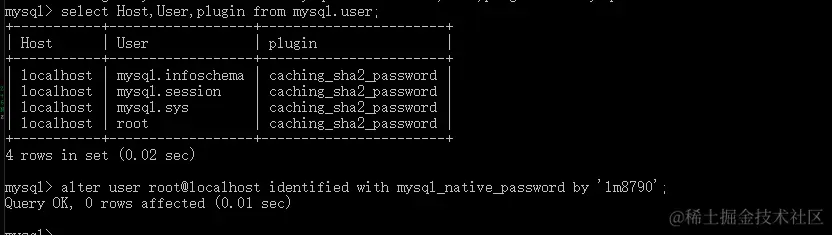 alter user root@localhost identified with mysql_native_password by '123456';