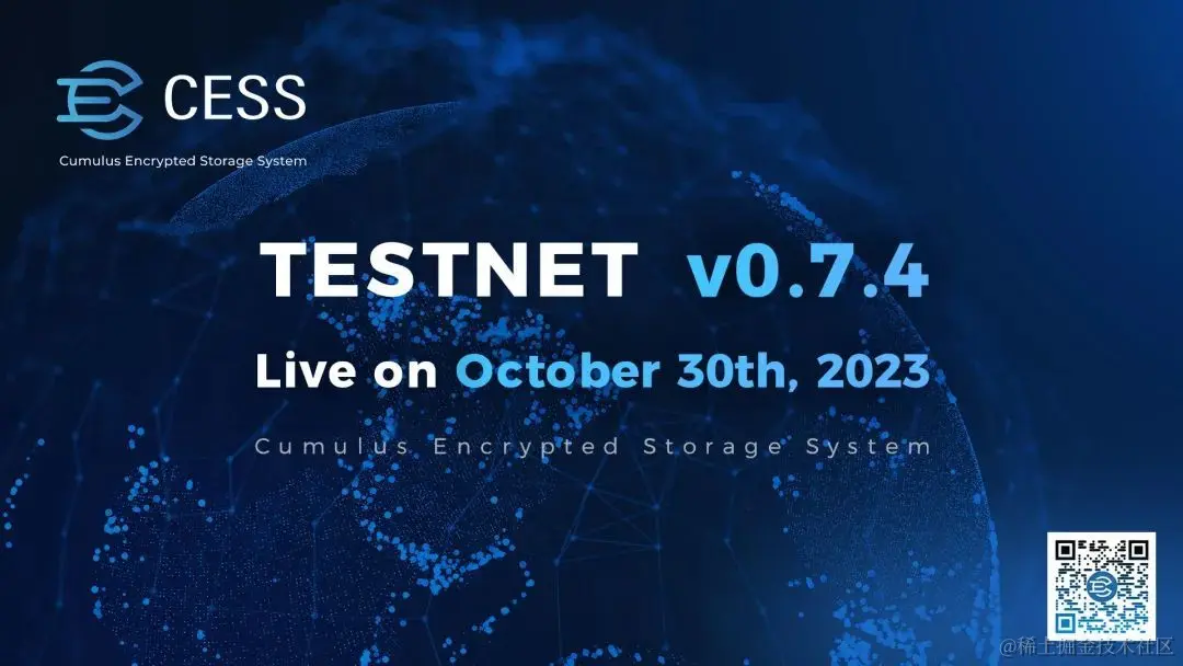 Cumulus Encrypted Storage System(CESS)将于 10 月 30 日 8:00(UTC 0)正式开启 CESS 激励测试网 v0.7.4 的公测。迄今为止,CESS 已经进行了 9 轮测试网升级,其中最高有超过 6300 个节点参与 CESS 网络建设,累计有三万多个节点参与测试网络。衷心感谢关注 CESS 的开发者、合作伙伴和广大用户们,同时也向积极参与测试、陪伴 CESS 更新迭代的矿工伙伴们表达尊重和感谢。每一个反馈,每一句建议都驱动了 CESS 网络的优化和迭代,助力 CESS 在耕耘 Web3 去中心化云存储技术和建设数据价值网络的道路上实现了一个又一个里程碑。