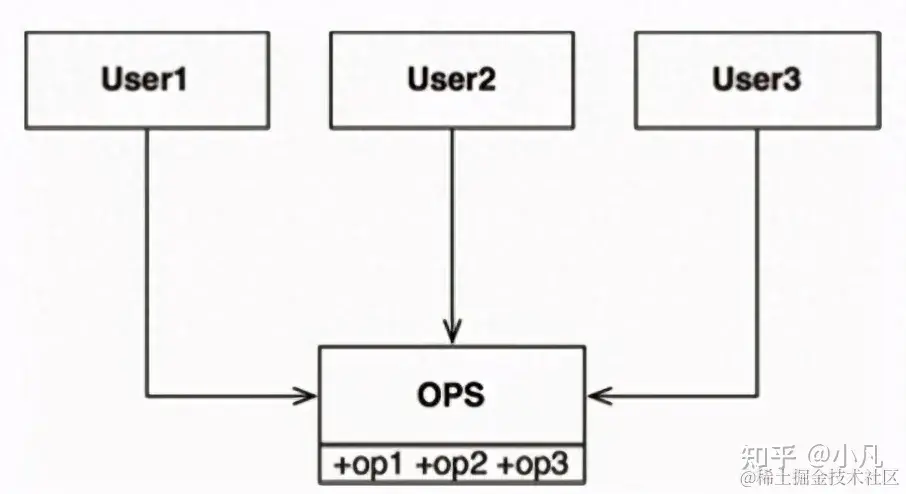 在图中所描绘的应用中,有多个用户需要操作OPS类。现在,我们假设这里的User1只需要使用op1,User2只需要使用op2,User3只需要使用op3。