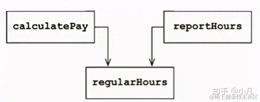 这时候,负责这项修改的程序员会注意到calculate Pay()函数调用了 regularHours()函数,但可能不会注意到该函数会同时被reportHours()调用。