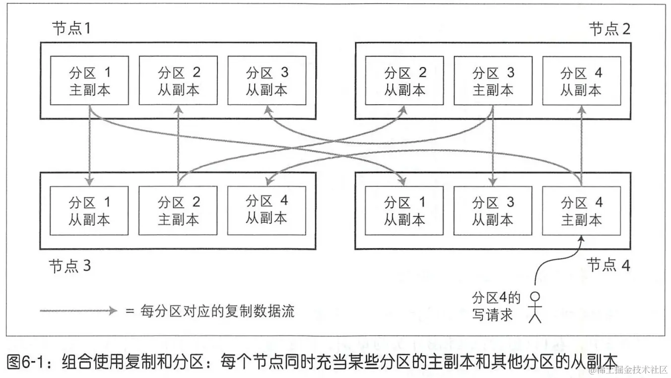 分区和复制通常结合使用,即每个分区在多个节点都有副本。某条记录属于特定分区,而同样的内容会保存在不同的节点上以提高容错。