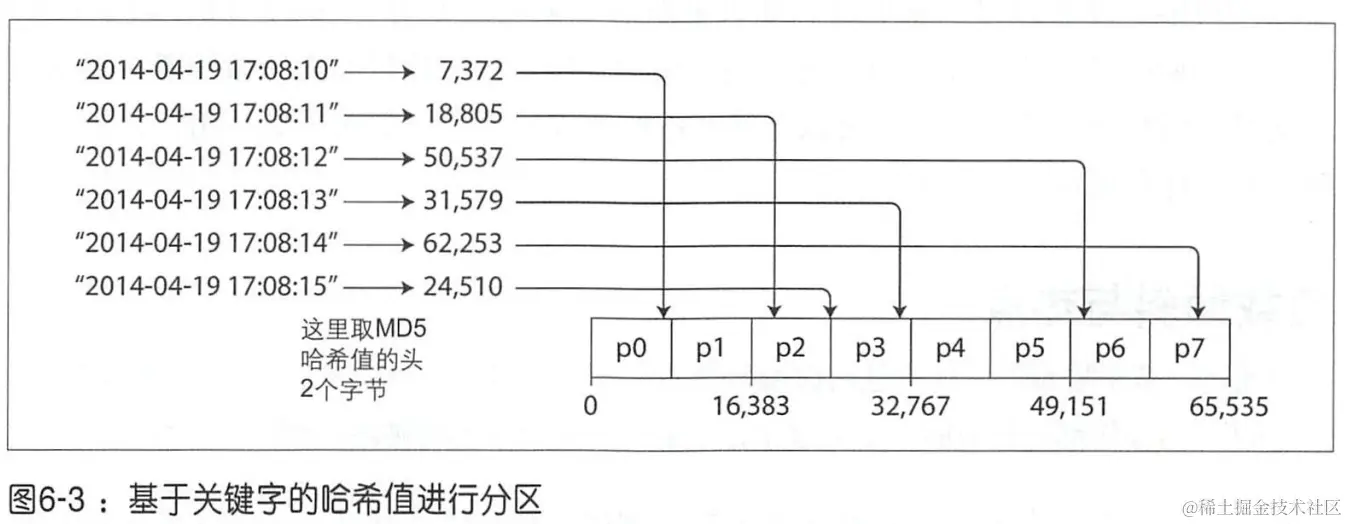 这种根据hash值进行范围分区可以很好的将关键字均匀分配到多个分区。