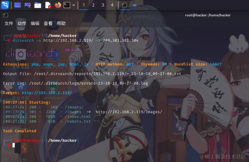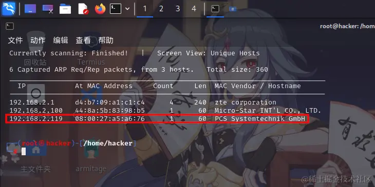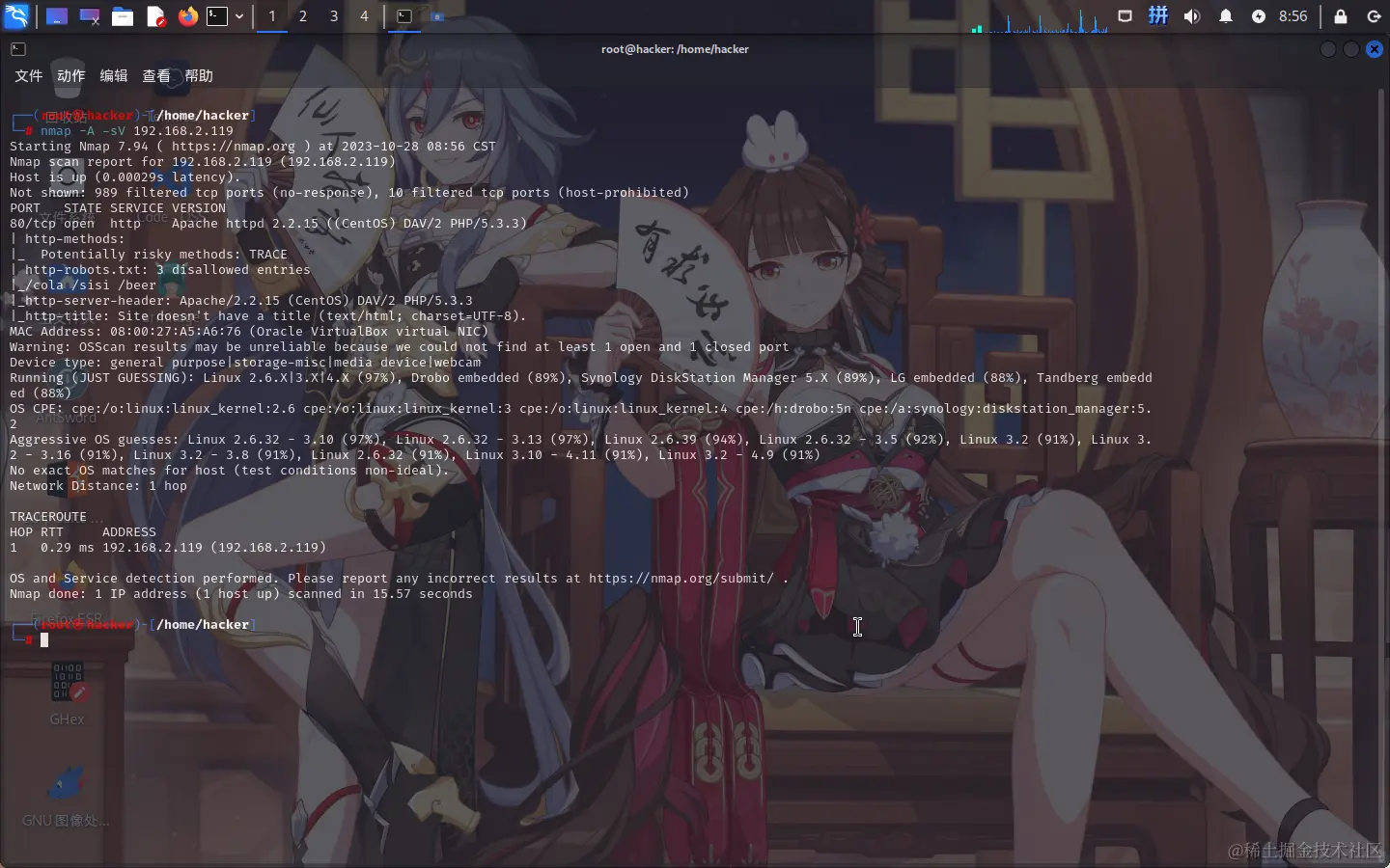 从图片中,我们看到了一台不明设备,判断该设备为靶机,IP地址为192.168.2.119。