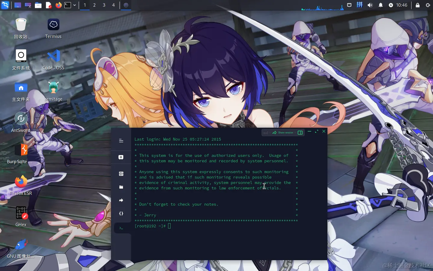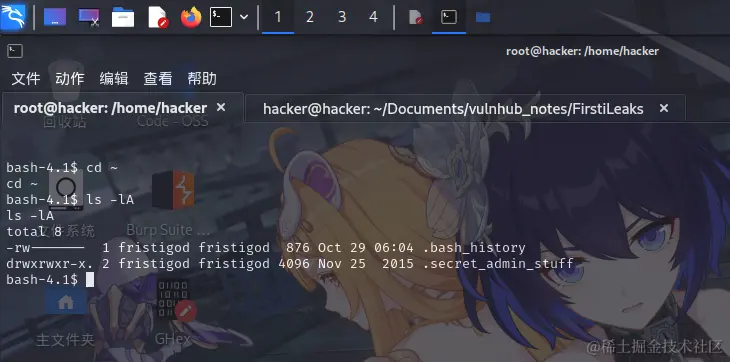 切换之后执行cd ~进入用户家目录,ls -lA查看文件,没想到竟然发现了: