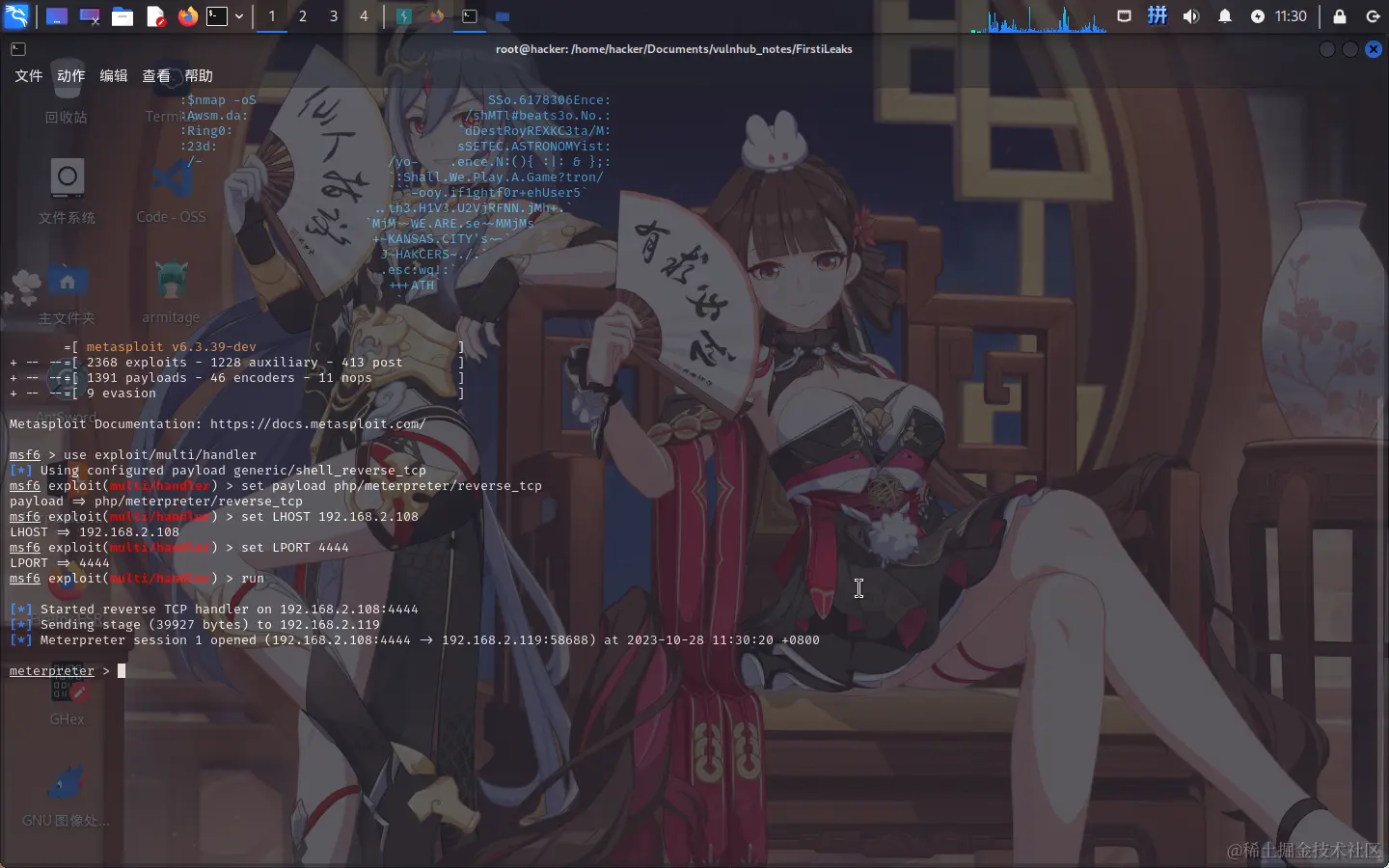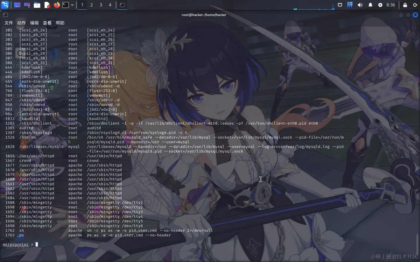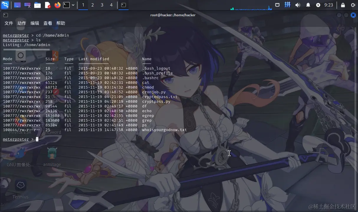 现在先登录用户admin看看(在Meterpreter中敲入shell命令):