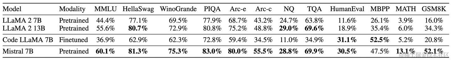 我们将Mistral 7B与Llama 2系列进行了比较,并重新运行了所有模型评估以进行公平比较。