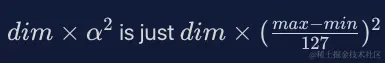 然后我们可以展开这个乘法,为了简化,我们将用 α 代替 (max-min)/127