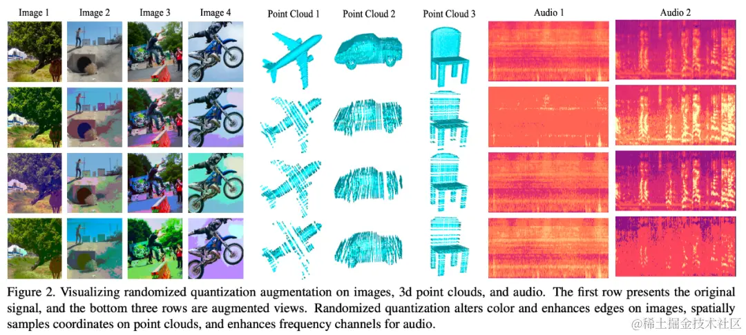 下图可视化了不同数据模态在使用了该数据增强方式之后的效果: