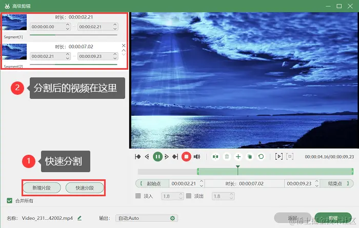 第三步:录制过程中可以随时暂停,录制结束后视频会弹出预览,我们可以直接在软件上对视频进行剪辑。