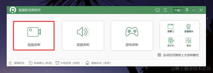 还有其它的录屏软件吗?免费录屏软件哪个好?推荐使用数据蛙录屏软件,它是一款专业级的屏幕录制软件,拥有丰富的录制模式,如窗口录制、音频录制、游戏录制、摄像头录制等。