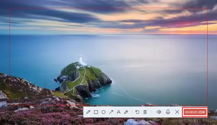 步骤2:在弹出的截图工具栏中,点击 “屏幕录制” 按钮,选择录制区域,开始录制。