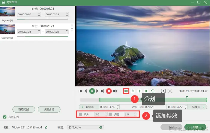 步骤4:录屏结束后,在软件上预览录制的视频,我们可以选择进入高级剪辑页面,对视频进行更多操作。