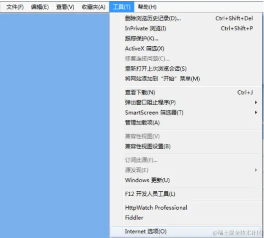 2、点击【工具】菜单,选择【Internet】选项